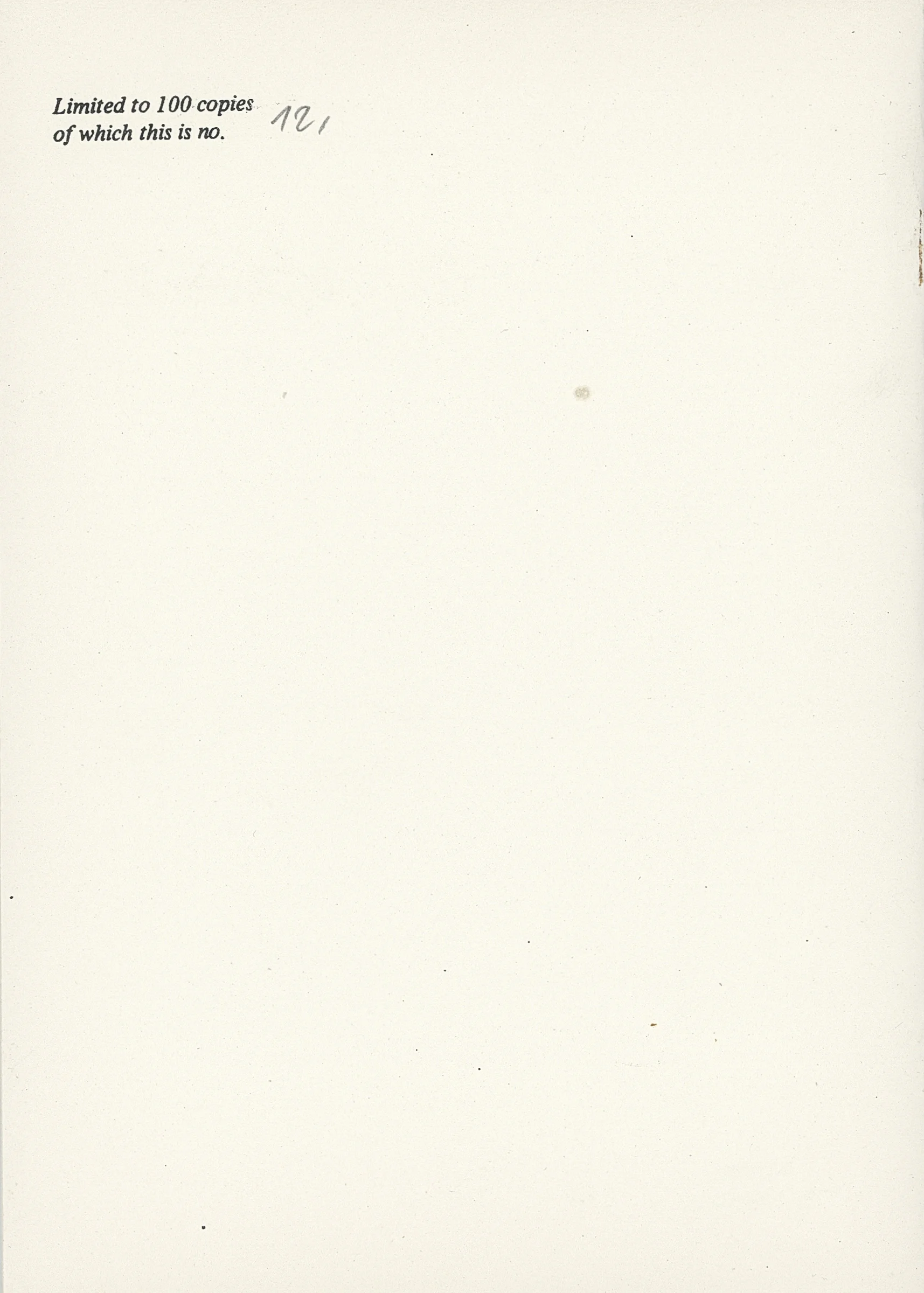 On the back cover, the inscription reads: "Limited to 100 copies of which this is no."
