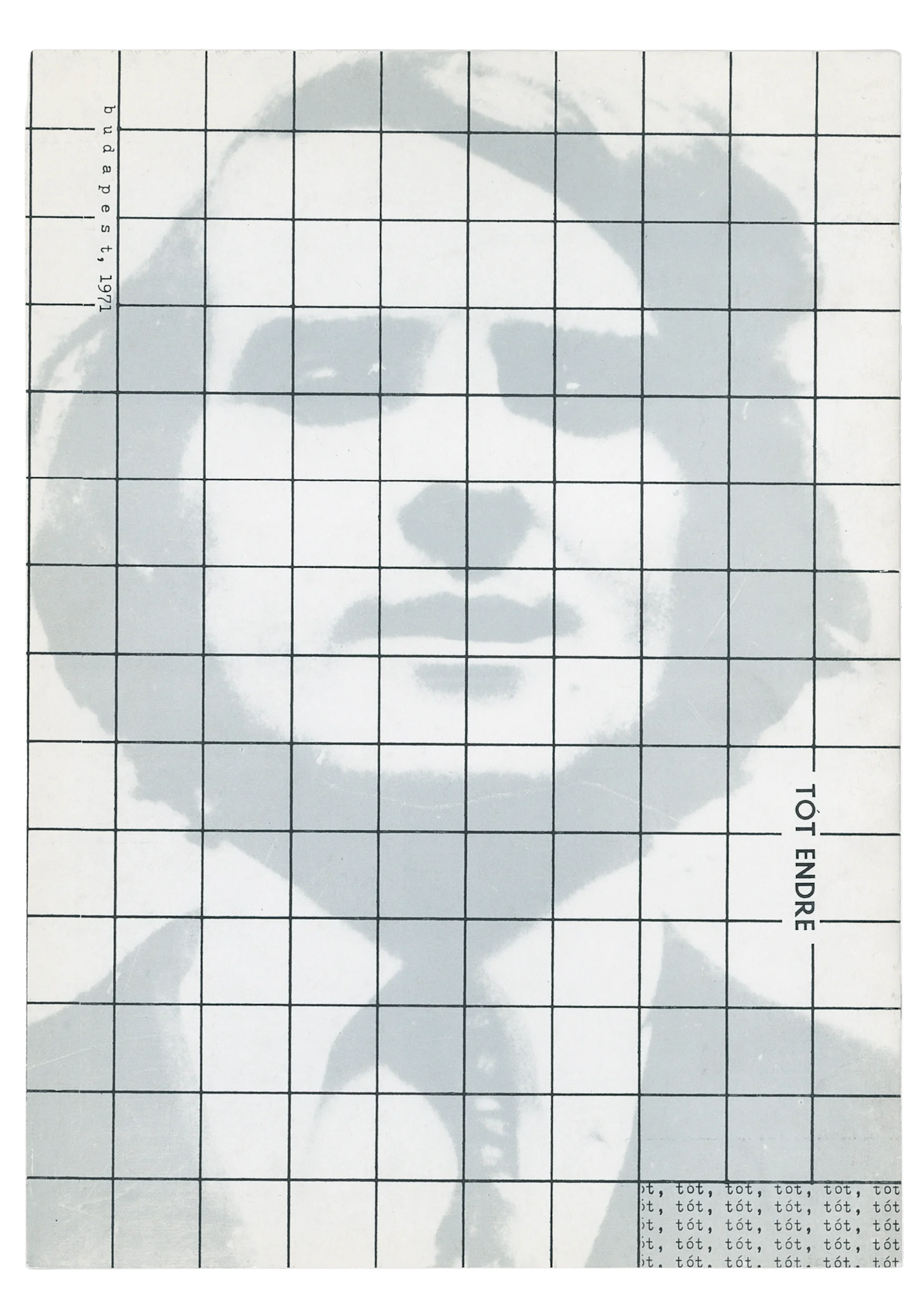 Budapest, self-published (samizdat), 1971. In-folio, 4 pages, card stock; one-colour screen print (light grey); 297 × 210 mm.