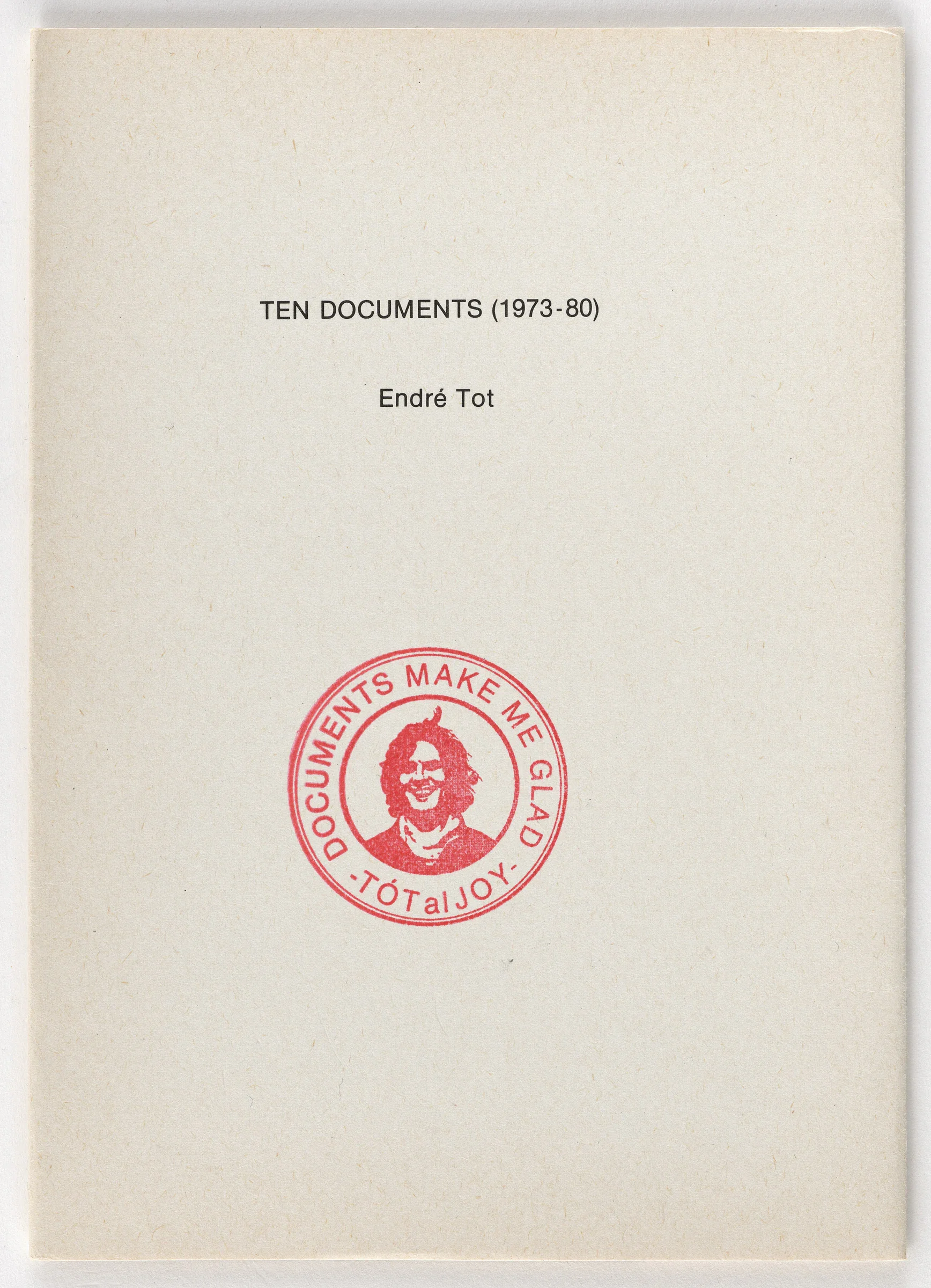 Our copy is signed in blue ballpoint pen and bears an original red ink imprint of an Endre Tót stamp: "TÓTalJOY by TÓT."
