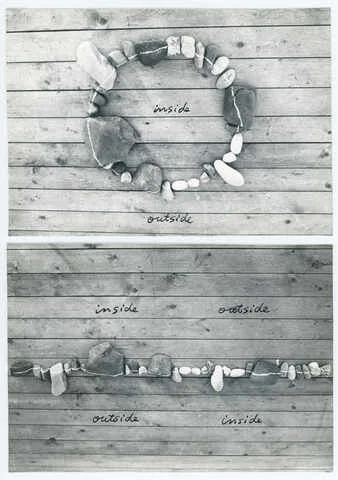 KEIJI UEMATSU — INSIDE / OUTSIDE 1977 — 1977 — CHF 6000. A pair of original vintage gelatin silver prints, on which the artist has handwritten the words Inside and Outside in felt-tip pen.On the reverse, in pencil and in the artist’s hand, appear the title of the work, his name and address, as well as two small sketches of the photographs indicating how to display them.Each print: 16.7 × 11.7 cm. A pair of original vintage gelatin silver prints, on which the artist has handwritten the words Inside and Outside in felt-tip pen.On the reverse, in pencil and in the artist’s hand, appear the title of the work, his name and address, as well as two small sketches of the photographs indicating how to display them.Each print: 16.7 × 11.7 cm.